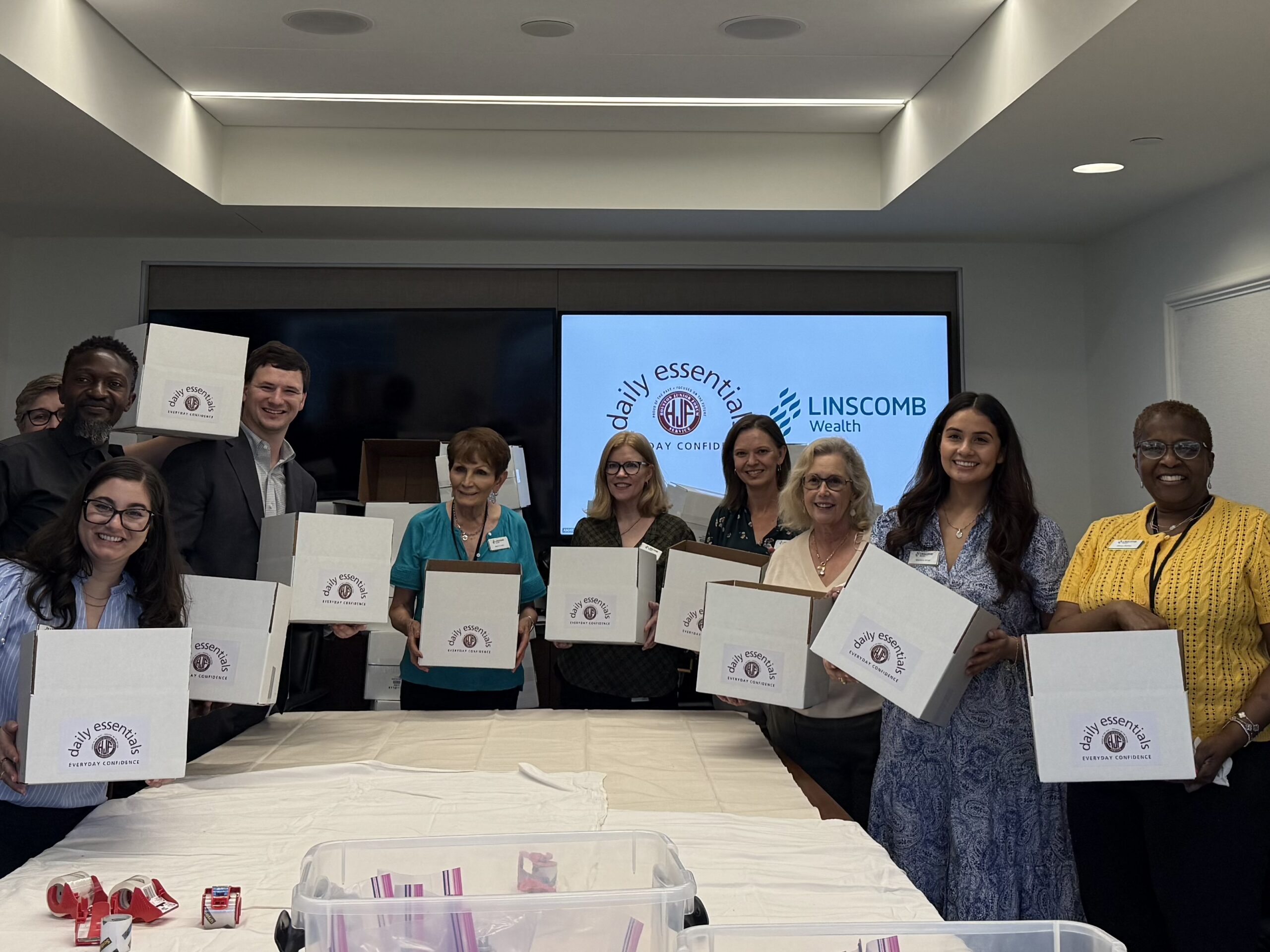 We are also always looking for organizations or groups who would like to be a “Pack Partner”, putting together a set of people to pack boxes for Daily Essentials – Everyday Confidence and either providing products or the funds for products to be boxed. Contact us at dailyessentials@hjfhouston.org to learn more.